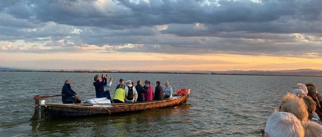 Realizamos el recorrido en el “albuferenc”, la embarcación tradicional de La Albufera: ligera, silenciosa y perfecta para deslizarse por las aguas tranquilas del lago.