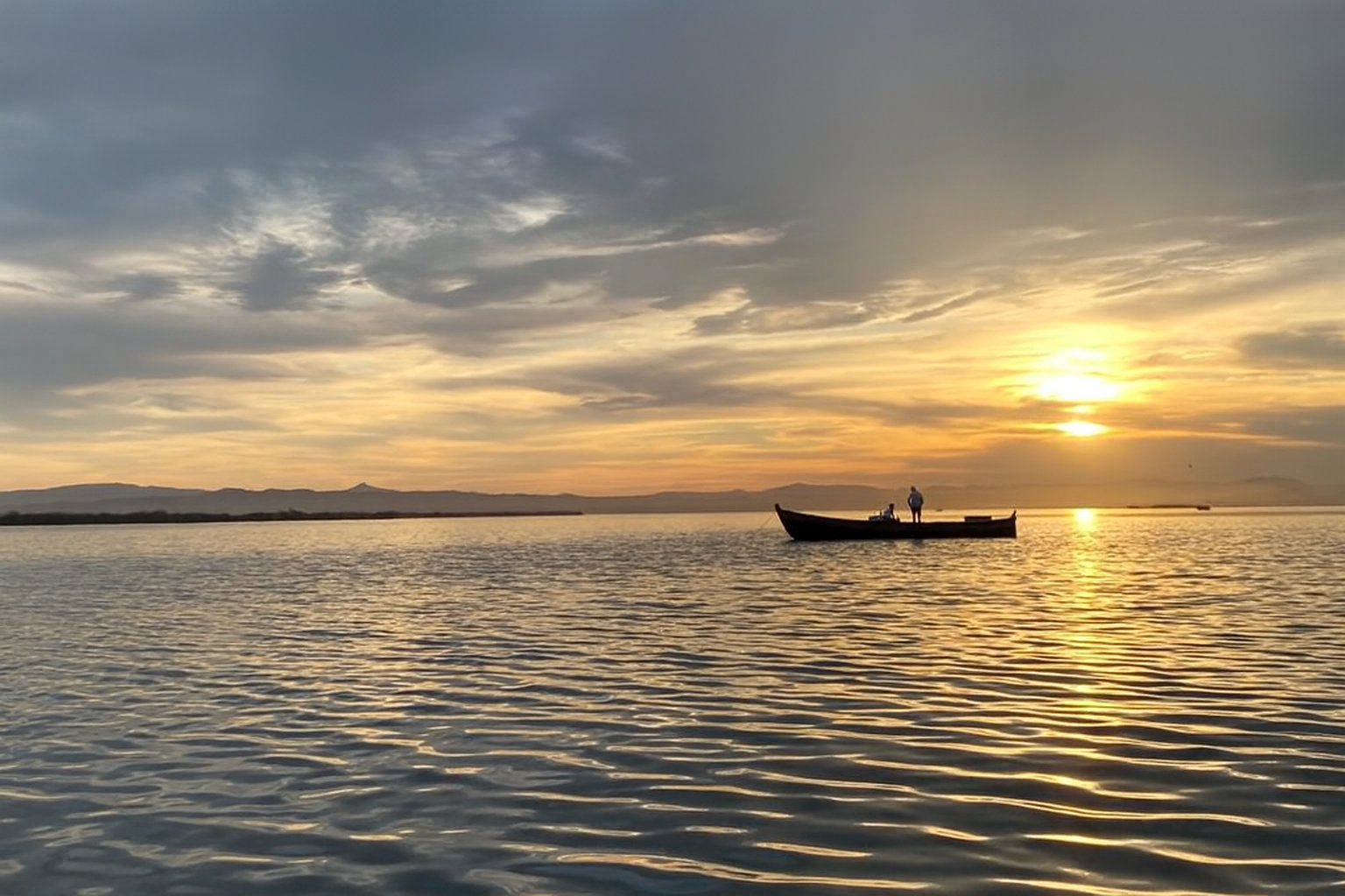 Después, embarcamos en el tradicional “albuferenc” para recorrer el lago, rodeados de arrozales, aves, barracas y paisajes que hablan de siglos de vida junto al agua.